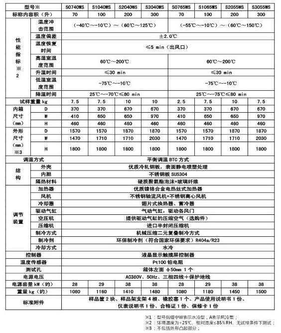 MC028系列溫度沖擊試驗箱  一、產(chǎn)品簡介 用途:適用于對電工、電子和其他軍用設(shè)備在周圍大氣溫度急劇變化條件下的適應(yīng)性試驗。 特點: 1.充分吸收國外同類產(chǎn)品的優(yōu)點,采用兩箱式上下結(jié)構(gòu),上箱體為高溫箱,下箱體為低溫箱。也可根據(jù)用戶要求設(shè)計,制造左、右結(jié)構(gòu)的兩箱式溫度沖擊試驗箱。也可以根據(jù)用戶要求采用單相式(或三箱式)結(jié)構(gòu)設(shè)計。 2.觸摸屏+PLC可編程邏輯控制器,RS485接口。 3.有工作室超溫、壓縮機過載、超壓、油壓超壓、風(fēng)機過載、缺相、壓縮機延時等保護功能,還有若干用戶選配的安全保護功能,如風(fēng)速過低,大門未關(guān)閉等等。 4.可選配遠程監(jiān)控計算機及軟件,上位機實行冗余設(shè)計,可連接PC電腦,也可連接觸摸屏控制器。上位機關(guān)機不影響系統(tǒng)控制。 二、技術(shù)參數(shù):